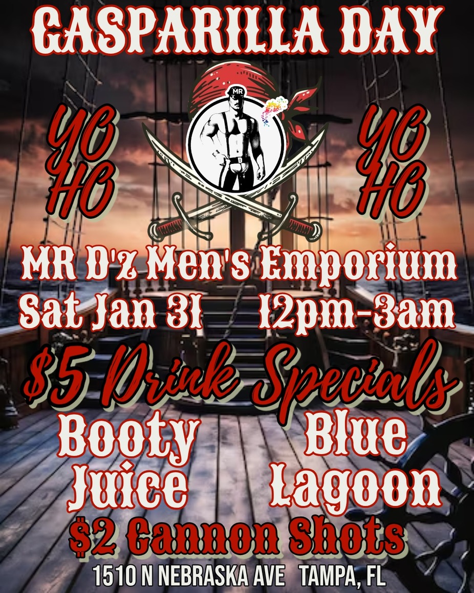 Join us for GASPARILLA DAY at MR D’z Men’s Emporium! 🏴☠️