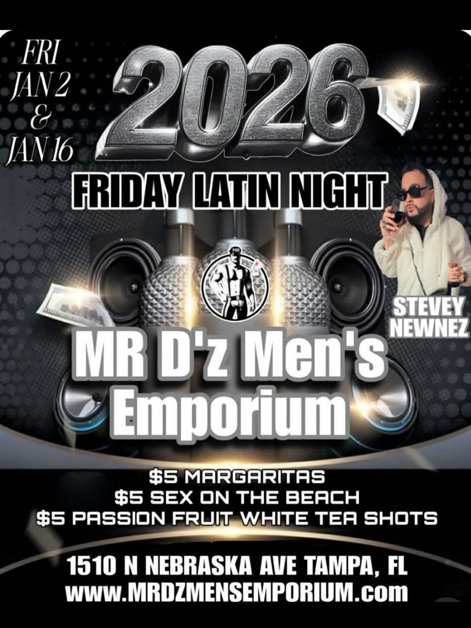 โAll roads leadโ to MR Dโz Menโs Emporium ๐น๐ธ๐ท๐ฅ๐ฅ๐บ๐ผ๐ค๐บ๐ป Don't miss all the first and third Fridays of each month is ~ Latin Night ~ ๐ผ๐บ๐ป๐๐บ๐ป๐ผ We're waiting for you this Friday, December 19, to have a good time dancing all night, with a surprise appearance by the awesome DJ Levi giving itย his all to keep you dancing the night away! As always the entrance is Free and enough parking for everyone, with delicious drinks all night, with their sexy bartenders Reinaldo Samuel and Vernon Vaden Special drinks of the Night $5.00 Margaritas $5.00 Sex on the Beach $5.00 Pation Fruit / White Tea shots Here we are waiting for you at 9pm at Mr. Dโz